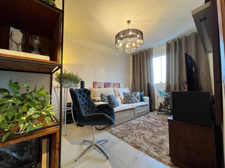 Sala para dois ambientes, cozinha com ármarios planejados, area de serviço, 02 quartos com ármarios, 01 banheiro social com box, amplo terraço com churrasqueira no espaço gourmert e 01 vaga de garagem demarcada e livre.