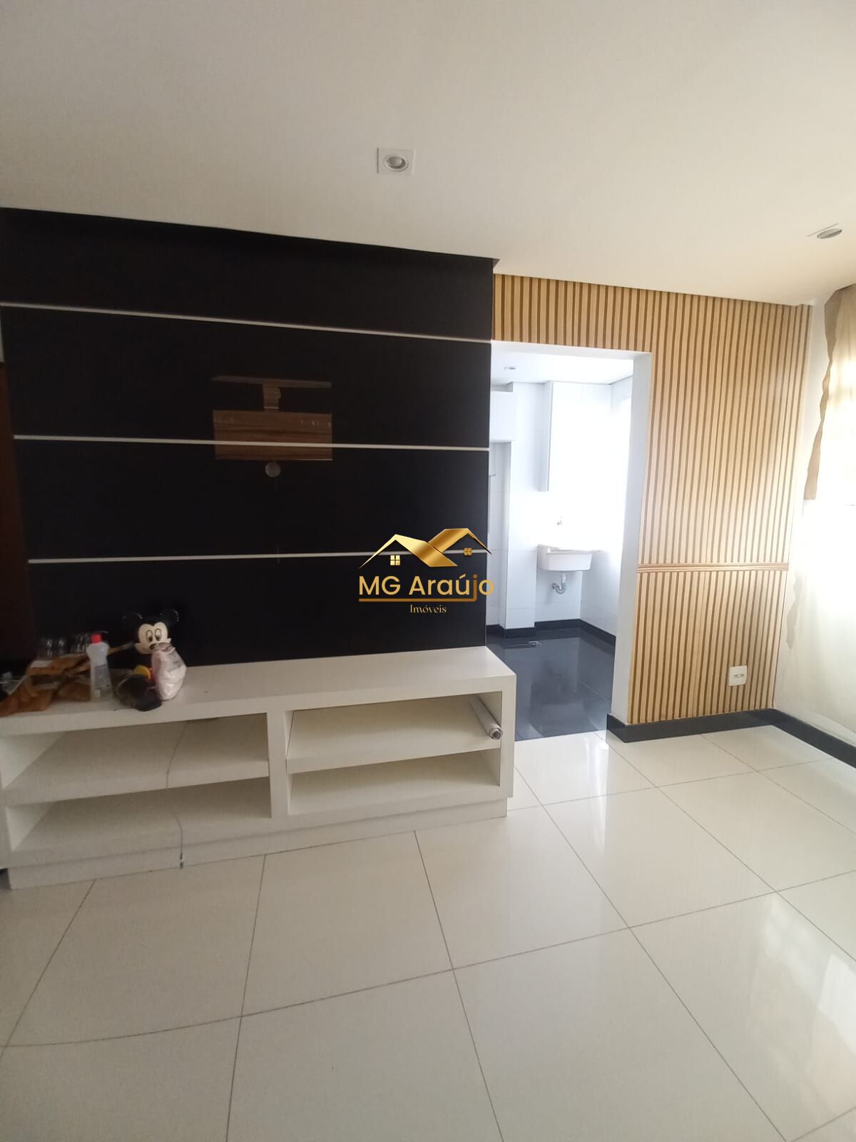 -Sala espaçosa para dois ambientes com painel;